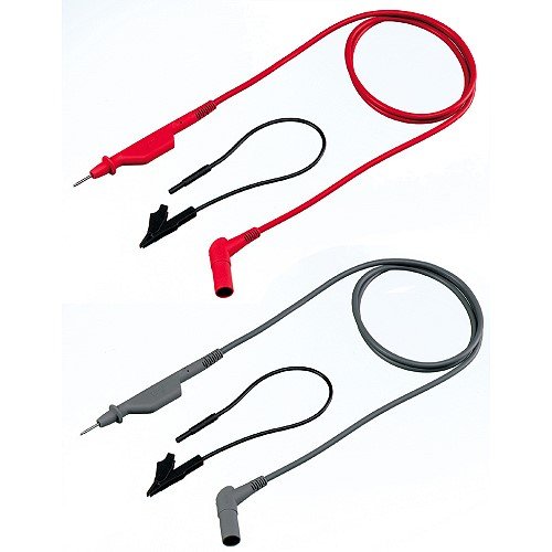 Set of two (one red, one gray) double insulated silicone shielded test leads for noise free measurements. Specially designed for use with the Fluke ScopeMeter 120 Series. Compatible with AC120 Alligator Clips and HC120 Hook Clips. Safety designed ground leads included. Integral strain relieve and extra hard probe tips provide extra long service life. Features safety designed shrouded plugs and notched tip to prevent probe from sliding.
