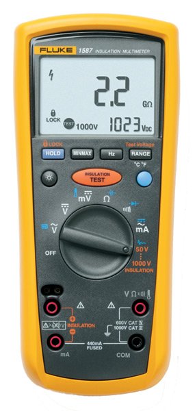 Meter can perform at least 1000 insulation tests with fresh alkaline batteries at room temperature. These are standard tests of 1000 V into 1 MΩ with a duty cycle of 5 seconds on and 25 seconds off. |