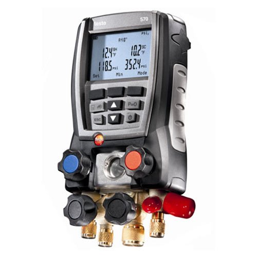 The Testo 570 is one refrigeration analysis instrument with multiple testing benefits. The Testo 570 is a robust refrigeration and heat pump analysis tool that can meet all your testing needs with just one instrument. With the 570, you can calculate superheat and subcooling simultaneously, measure pressure, temperature, current and vacuum, and record measurement values for up to 999 hours. The optional IR printer upgrade provides fast and easy on-site documentation of service work.