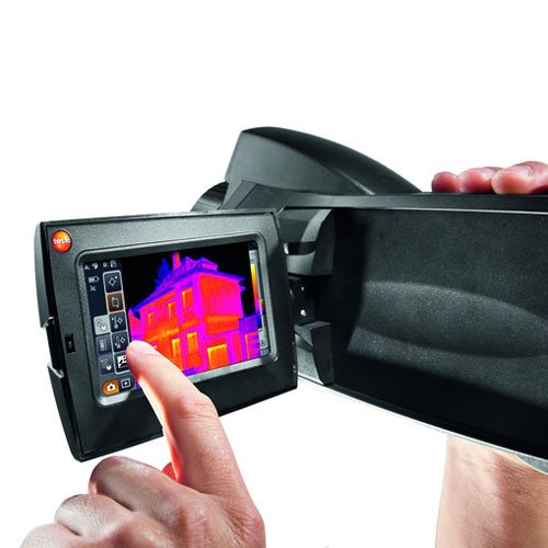 The Testo 885 Thermal Imager is the professional measuring instrument for the high-precision detection of anomalies and damage to building shells or interiors. The high-quality infrared measurement system means that energy losses or thermal bridges in building shells can be reliably detected, enabling comprehensive energy consultations to be carried out. Indoor leaks can be reliably located, without needing to dismantle cable or pipeline systems. The intuitive testo 885 with its rotating handle, fold-out display and lots of helpful functions, such as panorama image assistant and auto- focus, makes it is possible to carry out both quick on-site checks as well as comprehensive energy consultations with professional reports simply, reliably and professionally.
