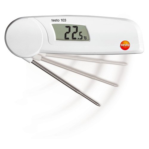 At a length of 11 cm, the testo 103 is the smallest folding thermometer in its class. It hardly takes up any space, so you can simply stow it in your breast or trouser pocket. That way, it is always quickly available and close to hand. The small folding thermometer is immediately ready to measure after folding out to an angle of greater than 30°, and is therefore flexible in its application. After measurement, the probe can simply be folded away and stored safely until the next measurement.
