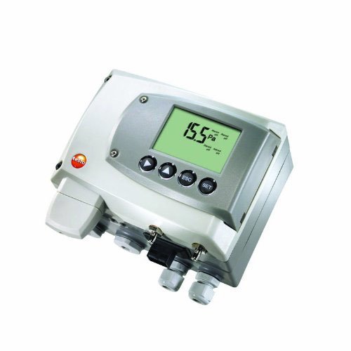 Testo 6351 Differential Pressure Transmitter. The Testo 6351 was developed specially for monitoring differential pressure in the measuring range from 0 to 100 Pa. In cleanroom technology, the maintenance of positive pressure prevents the entry of contaminated air. In order to keep the cleanroom conditions constant, the transmitter additionally calculates the parameters volume flow and flow velocity from the measured differential pressure.