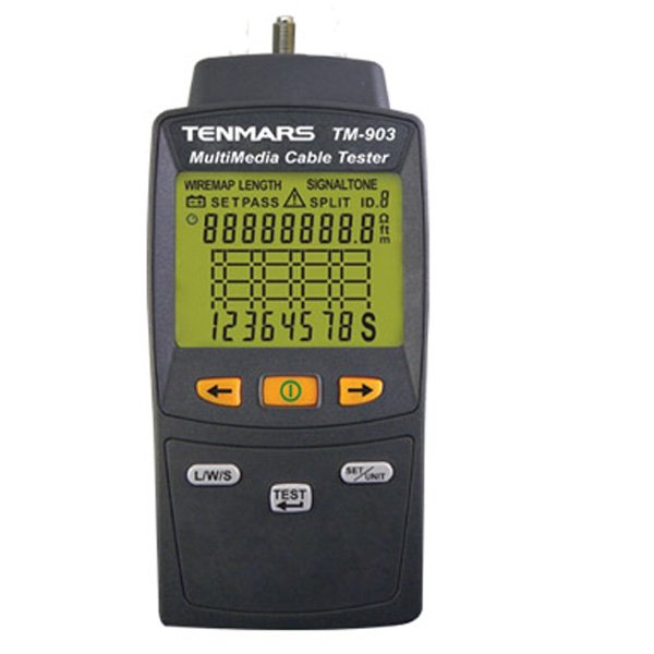 The TM-903 Multimedia Cable Tester is a hand-held test instrument that lets you verify and troubleshoot the LAN cable of twisted pair.