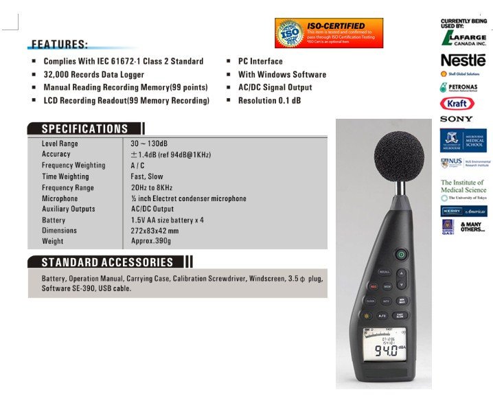 - Complies with IEC 61672-1 class 2 standard.