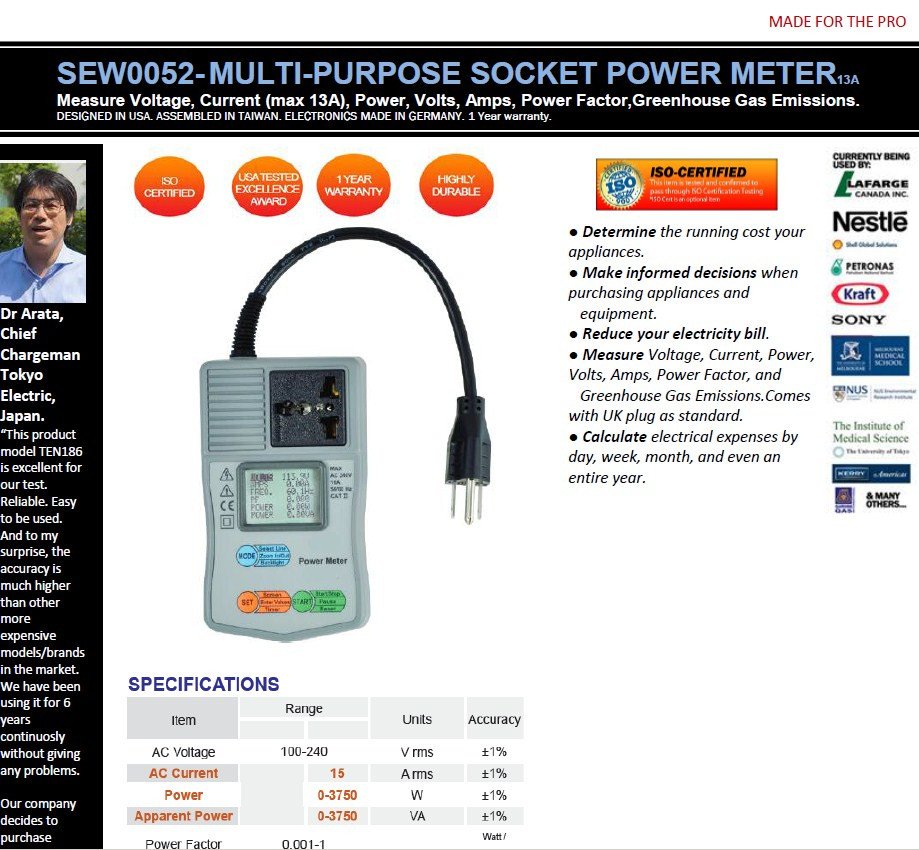 SEW0052- MULTI-PURPOSE SOCKET POWER METER( voltage, current, frequency, watt, power factor)