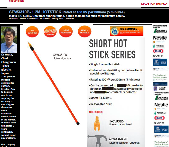 ● Single foamed hot stick.