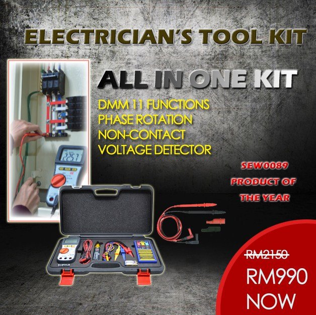 This is an electrical technician's kit which provides the electrical testing needs for installation, plant maintenance and repair of electrical systems.