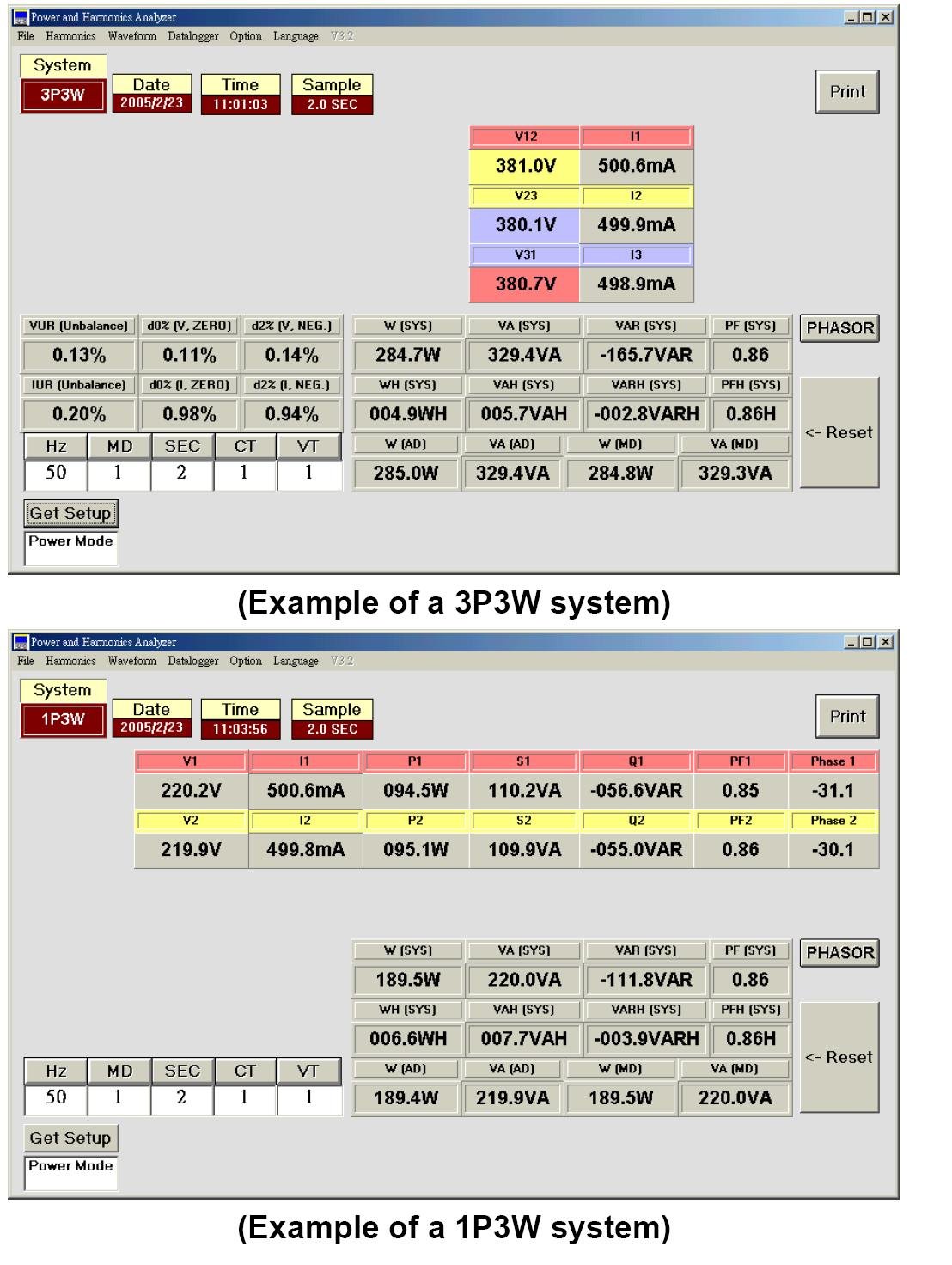 | Harmonics of AC Voltage in % and in Magnitude (1 to 99th order, minimum voltage at the 50 or 60 Hz>AC 80V) |