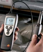 is an ideal entry level instrument for IAQ and IEQ measurements of temperature and humidity. Use it to monitor hard-to reach points in AC and heating system ducts, environmental changes in remote rooms or storage areas, anywhere you need to be two places at the same time or only have one hand free to work. The testo 625 temp/RH probe can be used three ways: either attached to the instruments as shown, or connected via a cable or mounted on an optional wireless handle. The clear back-lit display can be switched between relative humidity, wet bulb, and dew point at the touch of a button.