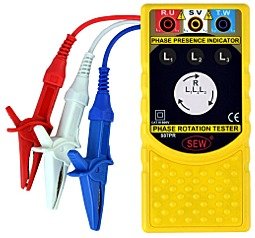● Indicates phase rotation. ● Indicates phase presence. ● No battery required. ● Phase rotation phase presence indicated on large liquid crystal display. ● Small, rugged enclosure. ● Color coded test leads. ● Phase presence indication from as low as 40Vac to as high as 500Vac. ● Fused. ● Lightweight, robust and compact. ● EN 61010-1 CAT III 500V EN 61010-2-032