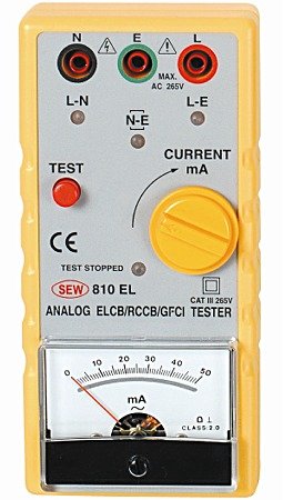 ● Wiring check. ● Can be used on 2 wires L-E (ELCB/RCCB/GFCI tester). ● Can be used on 3 wires L-E-N (with wiring check). ● Sense automatically 50 or 60 Hz. ● No battery required. ● Simple operation. ● Current injected in phase with the voltage. ● Fused. ● Wide operating voltage (195Vac to 265Vac). ● Other voltage optional (110V). ● Robust.