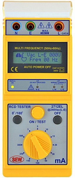● Microprocessor-controlled. ● 2 Lines × 16 characters LCD. ● Very low consumption. ● 50Hz and 60Hz operation. ● Menu-driven. ● Accurate digital readout of disconnection time. ● Automatic data hold function. ● Over temperature protection. ● Over voltage protection. ● Fuse protection. ● Zero crossing circuitry permit testing at 0° or 180°. ● Disconnection phase polarity shown on LCD display. ● Auto off and off override. ● Polarity trip indicator (positive or negative phase) ● Wiring polarity indicator. ● Measure voltage between Line and Earth before testing. ● Frequency measurement indication.
