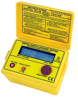● Microprocessor-controlled. ● Operating voltage 100-450V L-E. ● Rated current 999mA, at 317V AC/50Hz. ● Checks ELCB trip time and trip point (sensitivity). ● Auto off and auto ranging. ● Phase angle selection(0° / 180°). ● Indicates tripping phase angle. ● Impact resistant enclosure. ● Over temperature shut-down. ● Transient protection. ● Suitable for heavy industrial use. ● Fused.