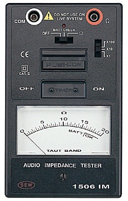 ● High quality Taut Band movement. ● Battery operated. ● Timer function for hands free use. ● Battery indicator. ● The tester measure with a frequency of 1kHz. ● Measure speaker’s impedance. ● Measure speaker lines (connected to load). ● Help to calculate and check audio power systems. ● Ideal for public address installation and maintenance. ● Measure transformer impedances.