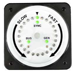 ● Input Voltage : 120V AC or 240V AC. ● Standard 4.5-inch switchboard case. ● Front panel mount. ● 3 bi-colored LED indicators for "SYNC", "GEN" and "BUS". ● 24 LEDs in a circle display the phase angle and the frequency differences between 2 networks. ● 360° LED indication. ● 12 o'clock position LED is bi-colored.